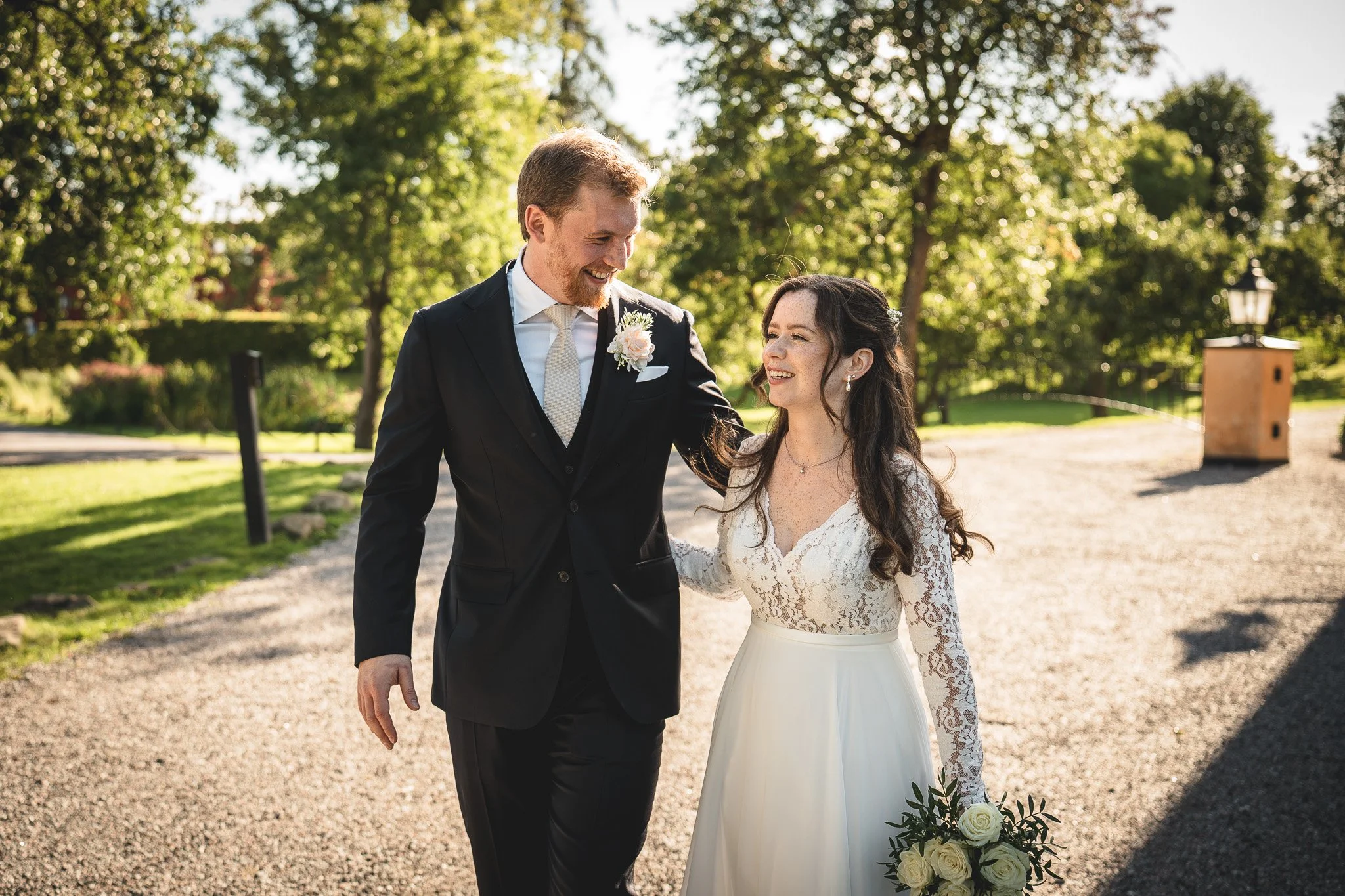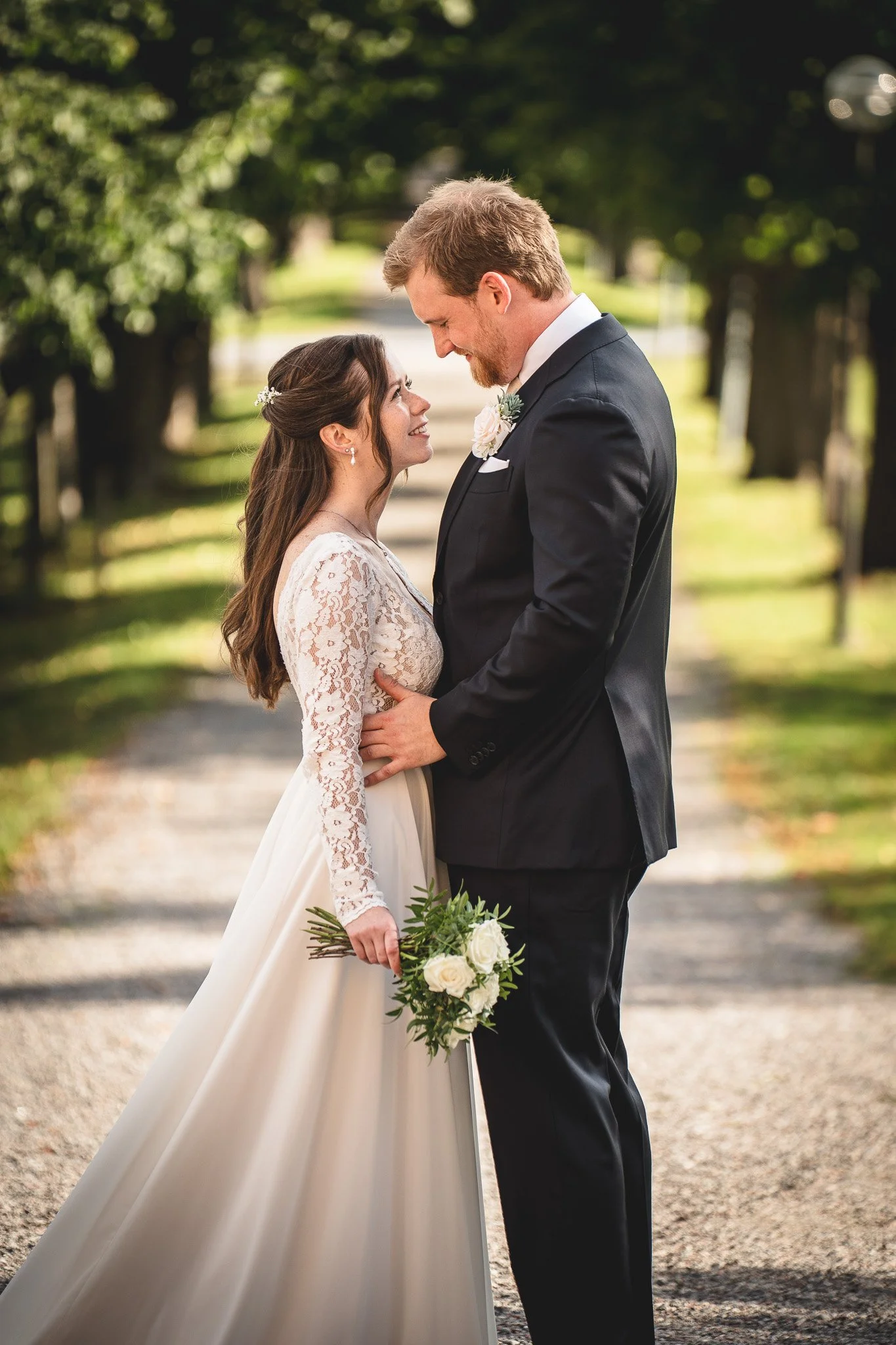 Allén upp mot slottet är pampig, men ändå privat. Det är den ultimata platsen för en "First Look" – stunden då ni ser varandra för första gången. Det ger en fantastisk inramning och bakgrunden skriker "Slott", utan att det känns stelt eller uppställt. Att ta den stunden själva innan vigseln lugnar nerverna enormt.